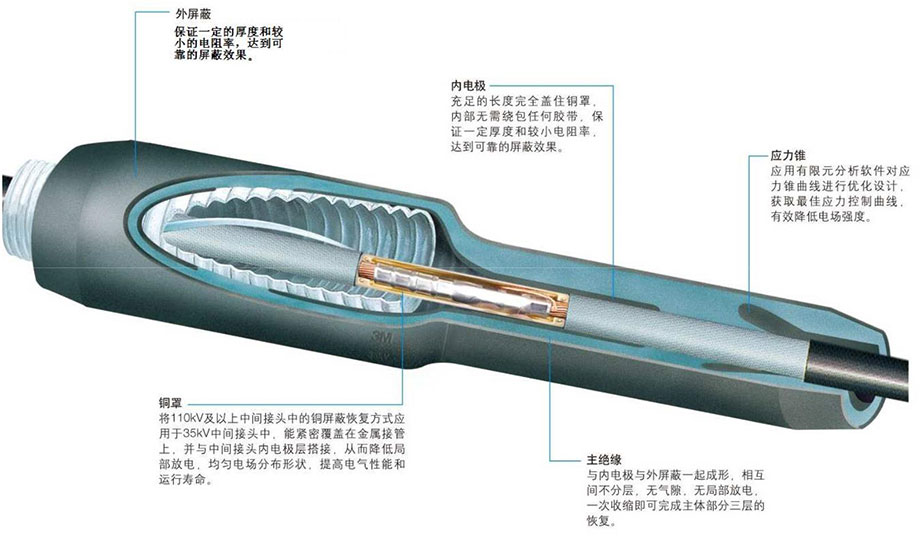 较大的冷缩扩张率保证了中间接头对电缆本体提供恒定持久的径向压力